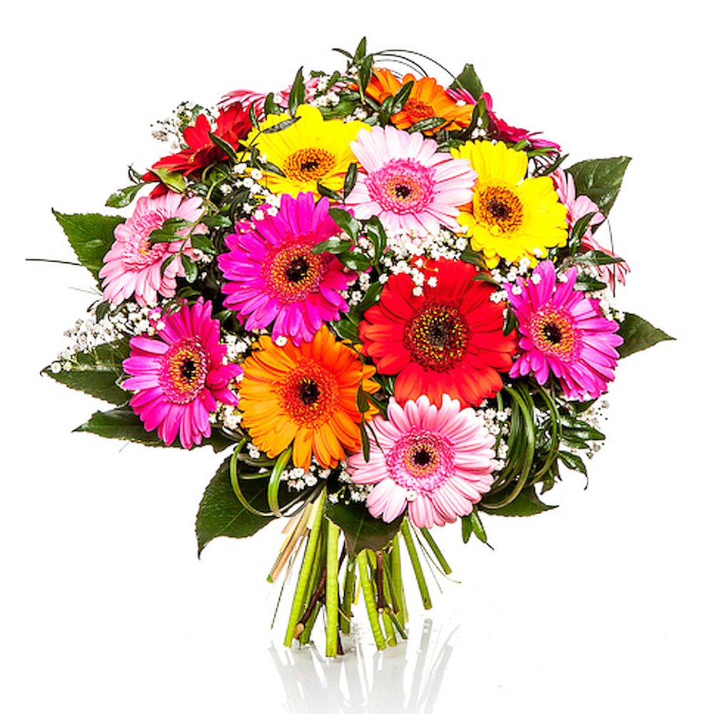 Large Mini Gerberas, Gypsophila (13 stems)